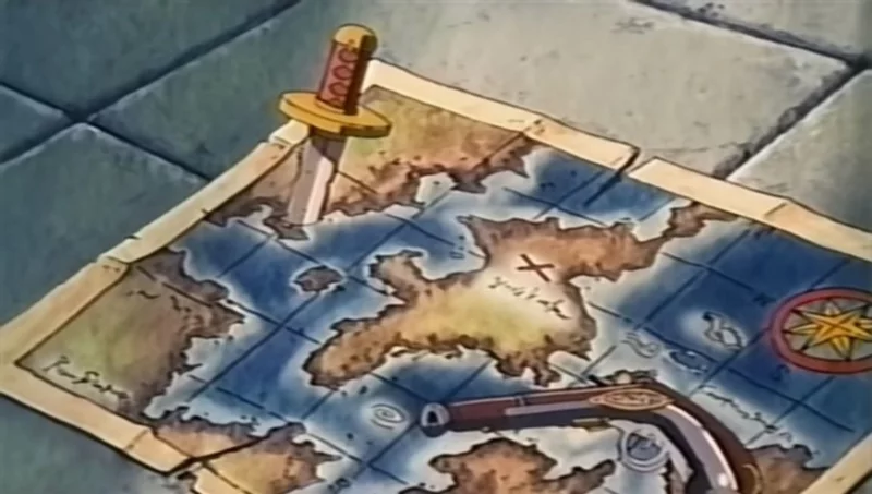 Во время очередного плавания лодку Луффи и его команды разрушает внезапно прилетевший из ниоткуда снаряд. Вдобавок появляется плезиозавр, который забирает Нами, оставляя Зоро и обессилевшего Луффи одних. Их прибивает к берегу, где маленькая девочка Мэдака сражается с пиратами. После битвы девочка рассказывает, что Ганзак поработил жителей острова и заставил их строить огромную пушку. Мугивары решают помочь островитянам.
