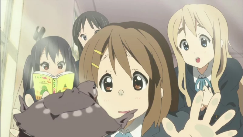 Она приходит в комнату клуба, где её тепло встречают находящиеся там девушки: Рицу Тайнака, Мио Акияма и Цумуги Котобуки. Когда выясняется, что Юи не умеет играть ни на одном музыкальном инструменте, её, несмотря на это, убеждают вступить хотя бы для того, чтобы предотвратить роспуск клуба. А после прослушивания небольшой композиции интерес у Юи разгорается лишь сильнее, и она решает научиться играть на гитаре.