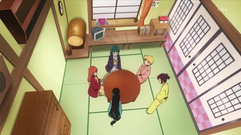 Пять давних подруг выступают в специфическом японском театральном представлении под названием ракуго. Суть его заключается в том, что один актёр сидит на сцене и рассказывает какую-либо комическую историю, изображая поочерёдно разных персонажей. Однако здесь мы увидим закулисье этого театра: как девушки готовят свои выступления, придумывают различные темы и обсуждают их, зачастую приходя к совершенно удивительным для всех выводам, которые уже совсем не относятся к первоначальной теме разговора.