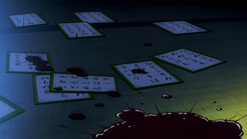 Одновременно с этим в японском доме в Арасияме, пригород Киото, находят тело действующего чемпиона Кубка Сацуки. Фотографии с места преступления указывают на причастность Момиджи, поскольку рядом с телом жертвы был разложены карты каруты.