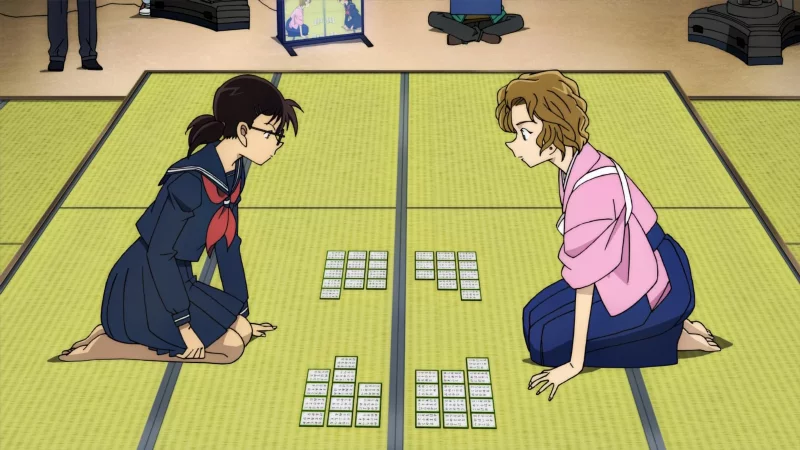В то время как из-за случившегося взрыва разгораются хаос и неразбериха, Конан сталкивается с загадочной незнакомкой, утверждающей, что она «невеста» Хэйджи, — Момиджи Оокой. Зная, что она является чемпионом старшей школы Киото в игре по каруте, схлестнуться с ней в Хякунин Иссю желает Казуха, которая начинает тренироваться с матерью Хэйджи, Шизукой, опытным игроком каруты.