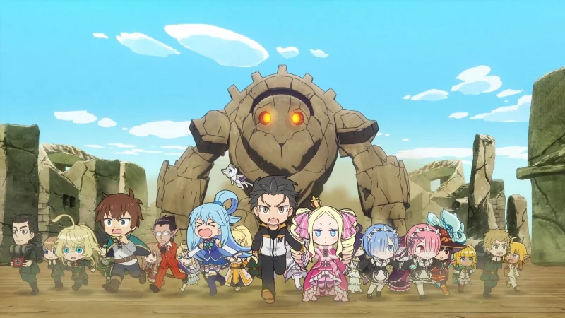 Приключения теперь уже квинтета попаданцев продолжаются. На сей раз Кадзума, Субару, Айнс, Таня и примкнувший к ним Герой Щита Наофуми неведомым образом попадают в загадочный пустынный мир, где сталкиваются с армией големов. Им предстоит помочь немногочисленным живым обитателям и найти путь обратно в мир-школу.